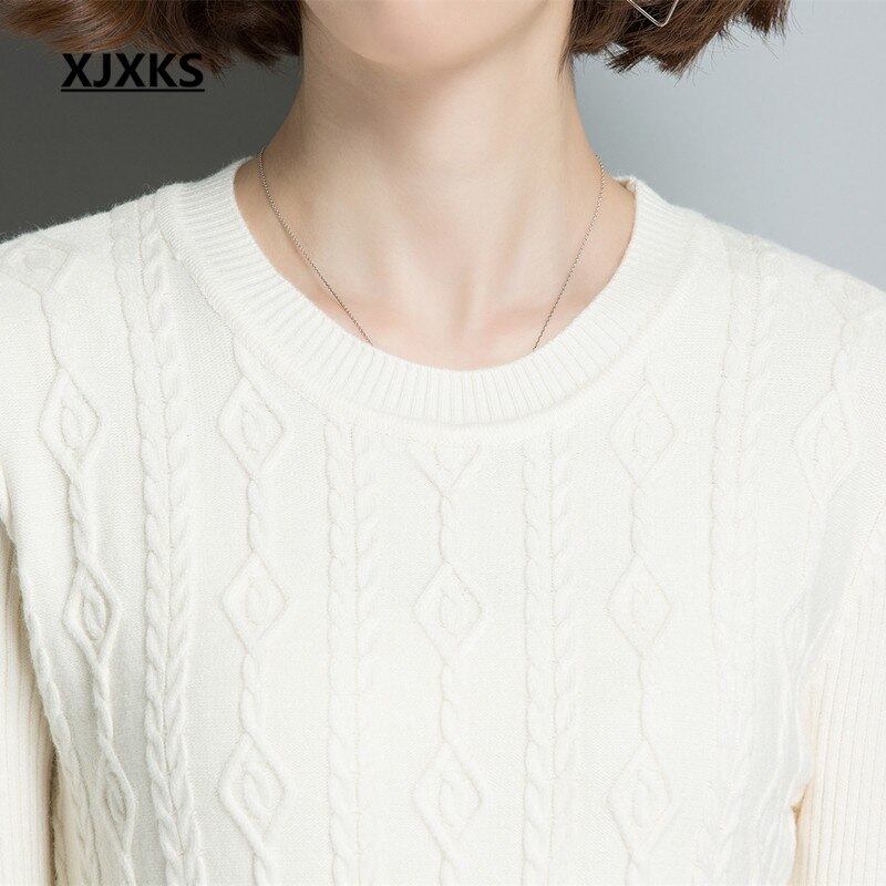 XJXKS カジュアル快適な女性のカシミヤのセーター 2018 秋と冬の新ラウンドネック長袖高弾性女性のセーター