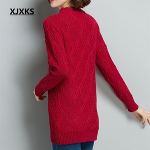 Xjxks女性秋冬セーターファッションカジュアルロングスリーブソリッドプルオーバー暖かいセーターニット暖かいセーター