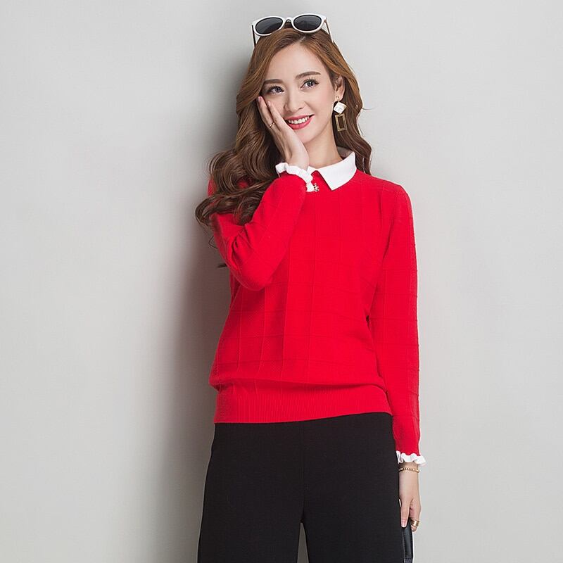 Xjxks女性セーター2017春長袖セーター大サイズレディ服ファッション基本プルファムカシミヤセーター