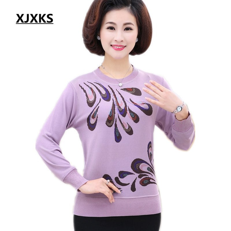 Xjxks 2018春新レディース薄いニットセーターやプルオーバー緩い大きいサイズファッションプリントダイヤモンド女性のトップス