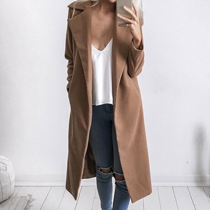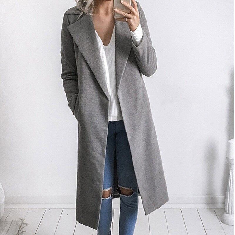 2018 秋冬新ウールコート女性ラペル特大ロングスリムトレンチコート女性オープンシュティッヒビッグサイズ 3XL ウールジャケット 6Q0256