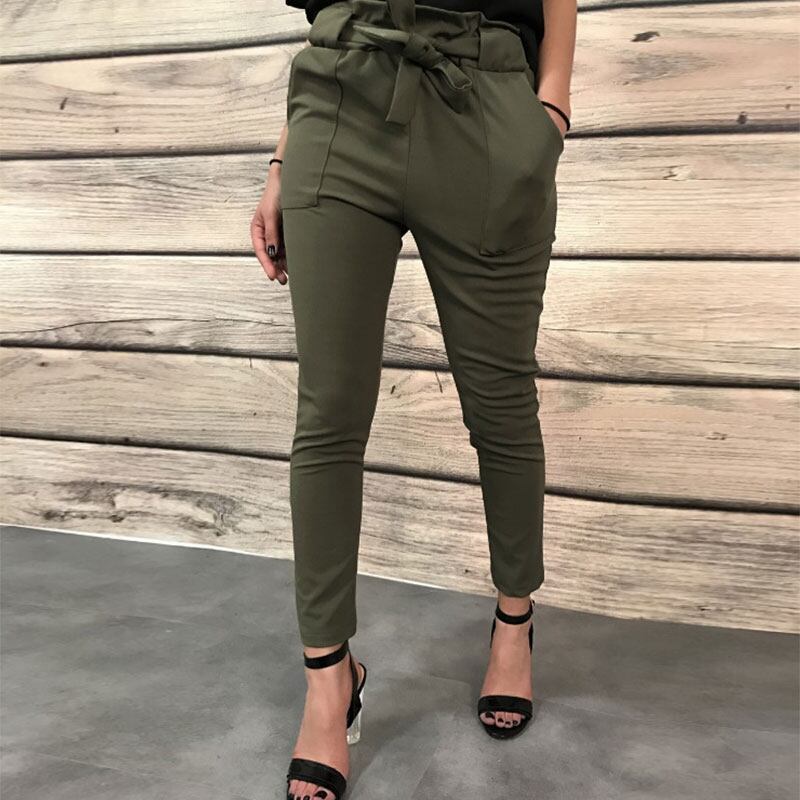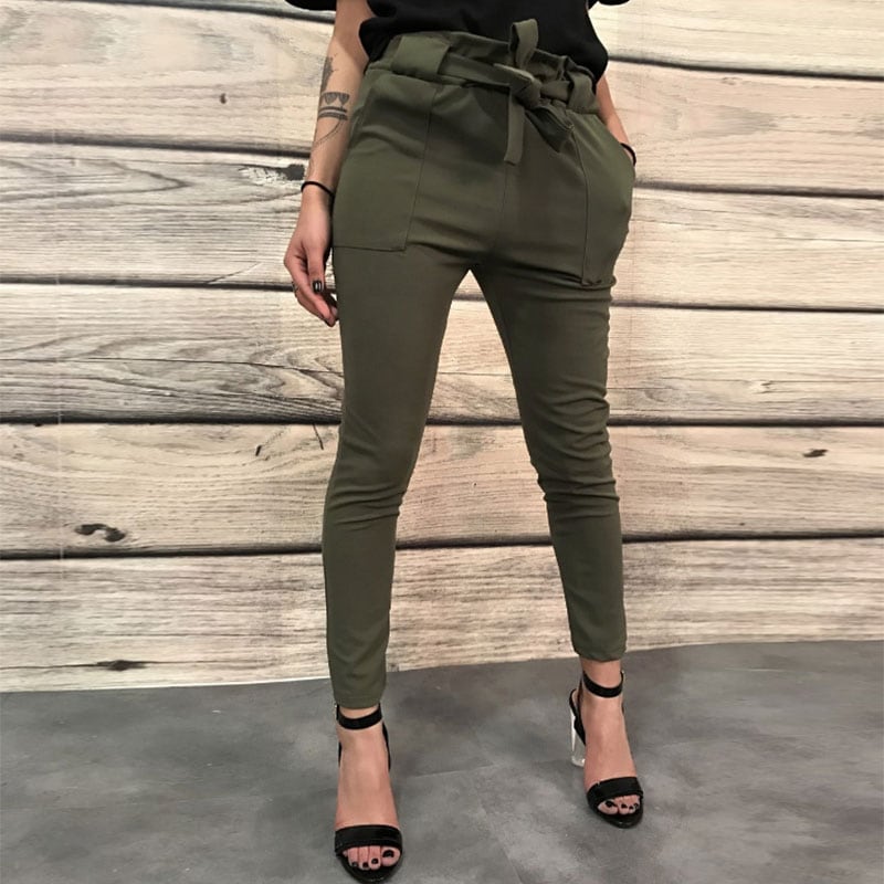 女性ハイウエスト包帯パンツ秋弾性カジュアルパンツ女性のワークアウトの緑色固体スポーツ鉛筆のズボンのズボン 6Q1834
