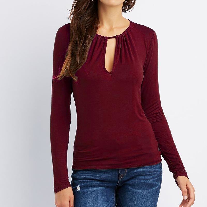 新しい固体スリムtシャツ女性のtシャツ2018春夏tシャツ女性トップスカジュアルロングスリーブファムmujerカワイイ服6Q1397