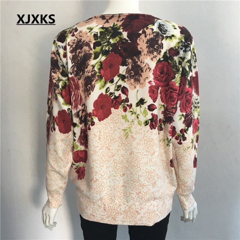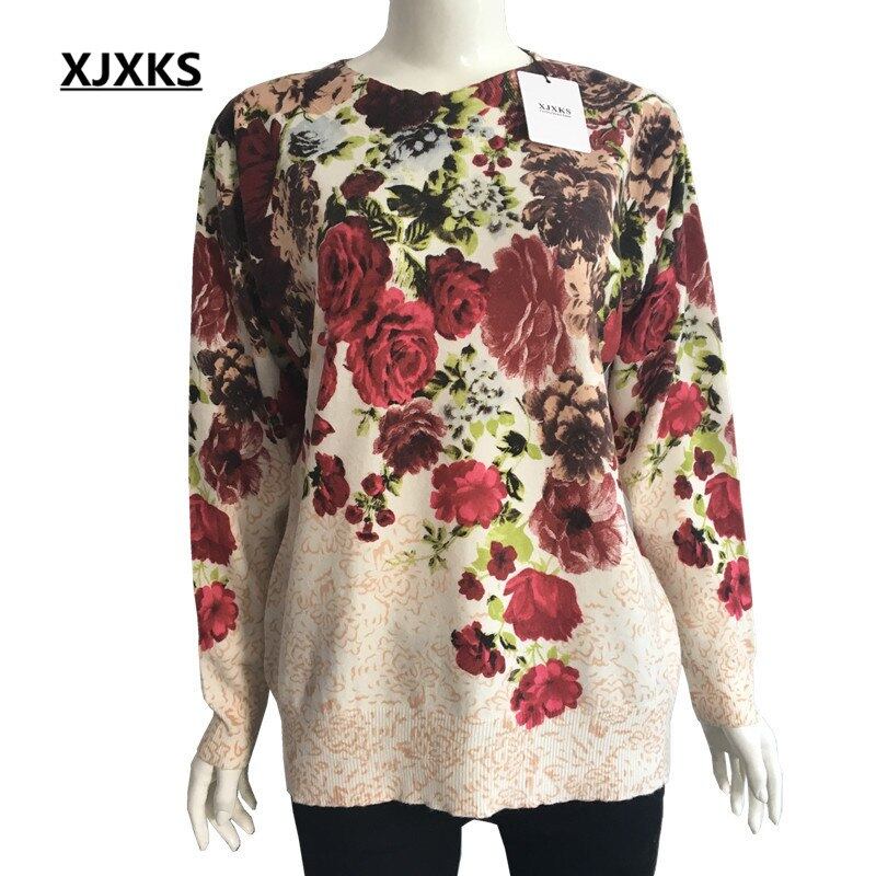 Xjxks特大セーター女性ジャンパー服ファッション長袖プリントoネックプルオーバーニット女性のセータープルオーバー