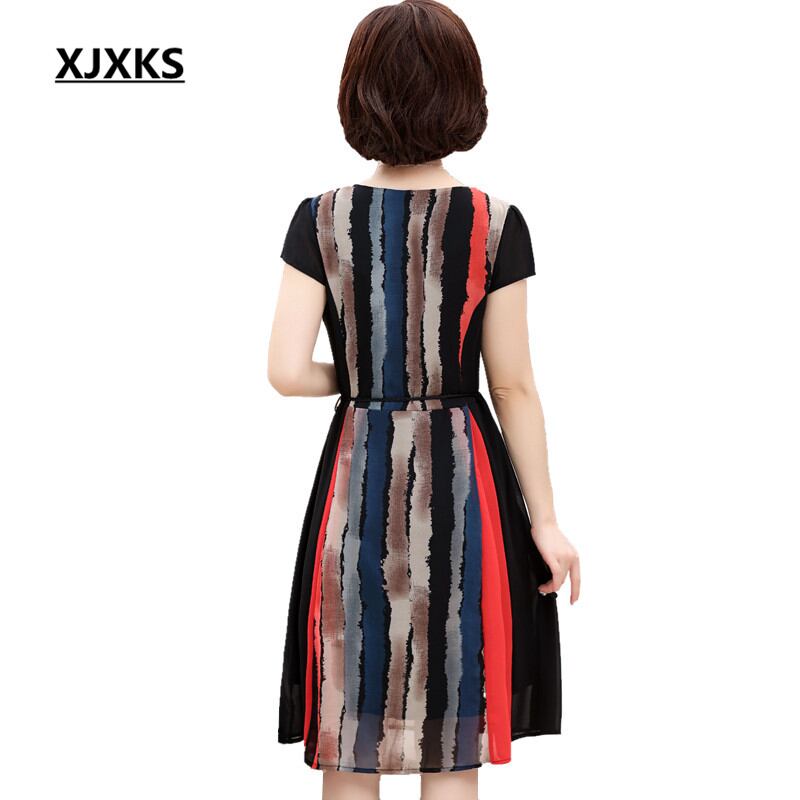 Xjxks新しい到着ファッション女性サマードレスカジュアル半袖安い服中国シフォンプリント花のドレス