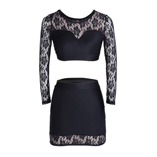 2016夏のファッションナイトクラブドレスvestidosセクシーなoネックツーピースブラックレースロングスリーブミニドレス1689 dx