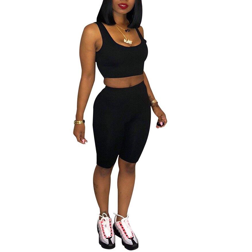 HAOOHU セクシーな 2 ピースセット女性夏の服装作物トップス + ショーツビーチ汗スーツマッチングセットカジュアルボディコンフィットネストラックスーツ