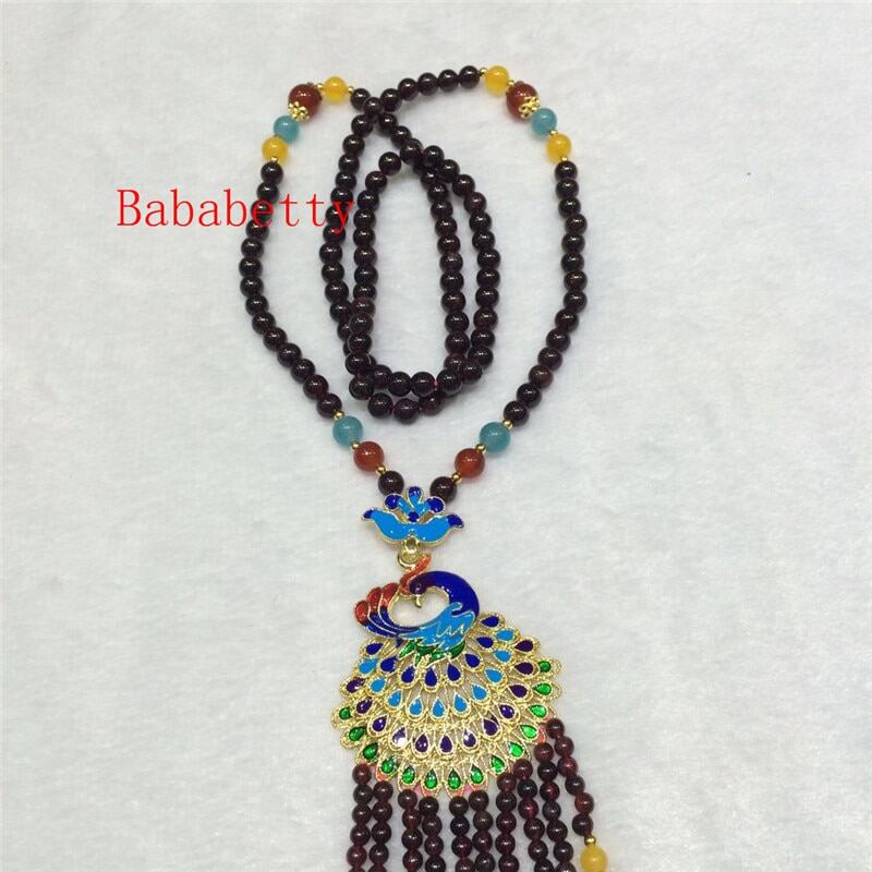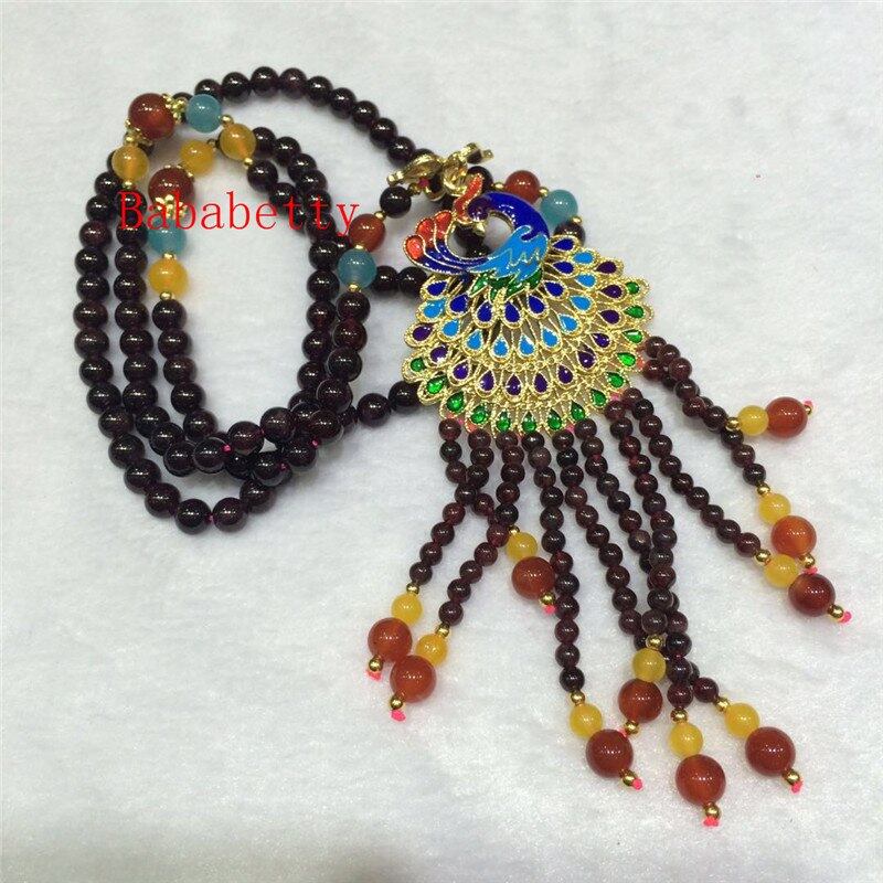 ナチュラルワインレッド石ハンドニットネックレスセーターチェーン孔雀5-6ミリメートル長い25インチ