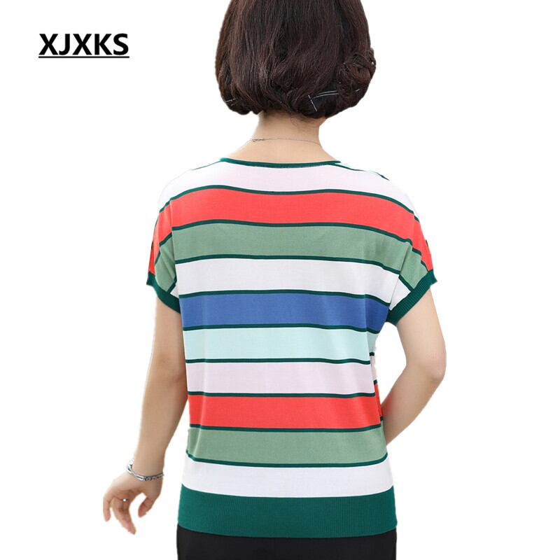 Xjxks 2018夏新しい女性のtシャツファッションバットスリーブストライプラウンドネック半袖緩い大きいサイズの女性のtシャツ