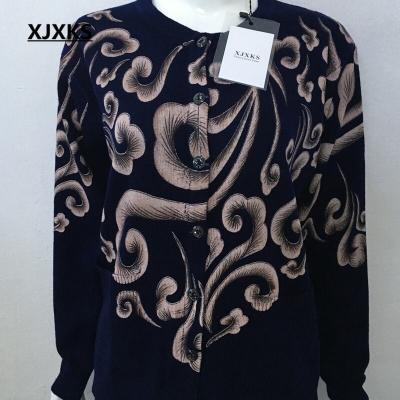 Xjxksかぎ針編みロングスリーブ生き抜く女性の緩いカーディガンニットプリントジャンパー秋冬セータービッグサイズ女性カーディガン