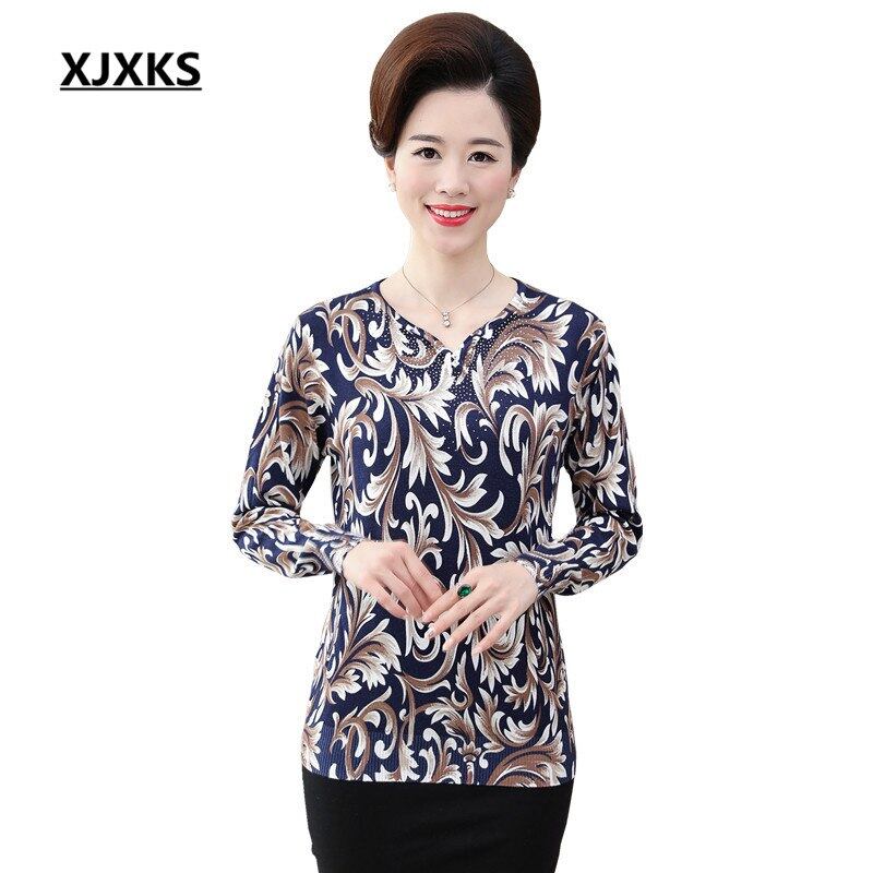 Xjxksファッション女性セーターやプルオーバープリント秋服ニットジャンパー長袖vネックセーター7535