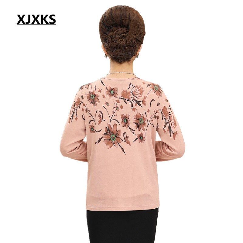 Xjxks tシャツ女性ニット母トップス+生き抜くカジュアル春セット良い品質プリント花ラウンドネックトップシャツ