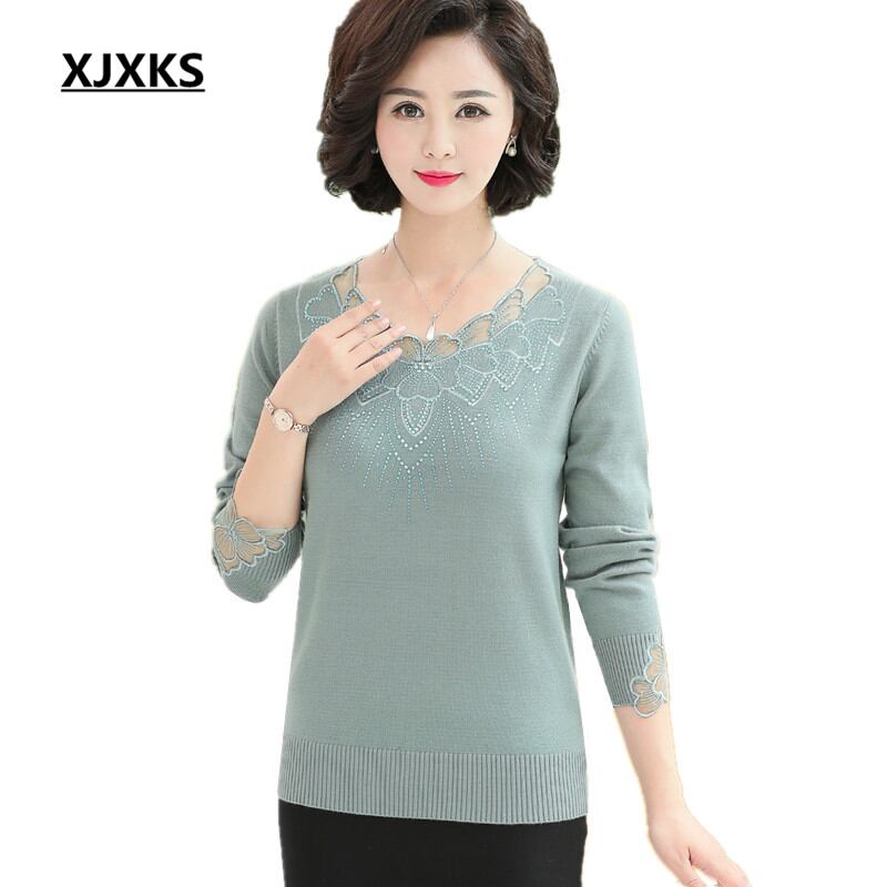 XJXKS 女性ニットシャツ 2018 ボト秋と冬の新ファッション中空刺繍ルーズ大サイズの女性のセータープルオーバー
