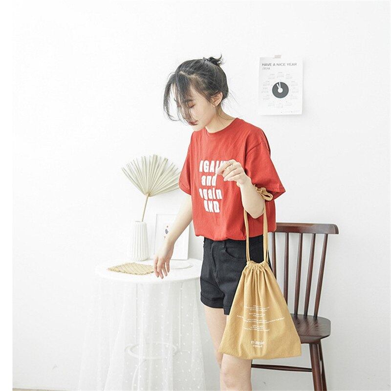 Yile 1セット(3ピース)コットン巾着旅行主催バッグカジュアル手首バッグプリント英語手紙4色から選択するe77