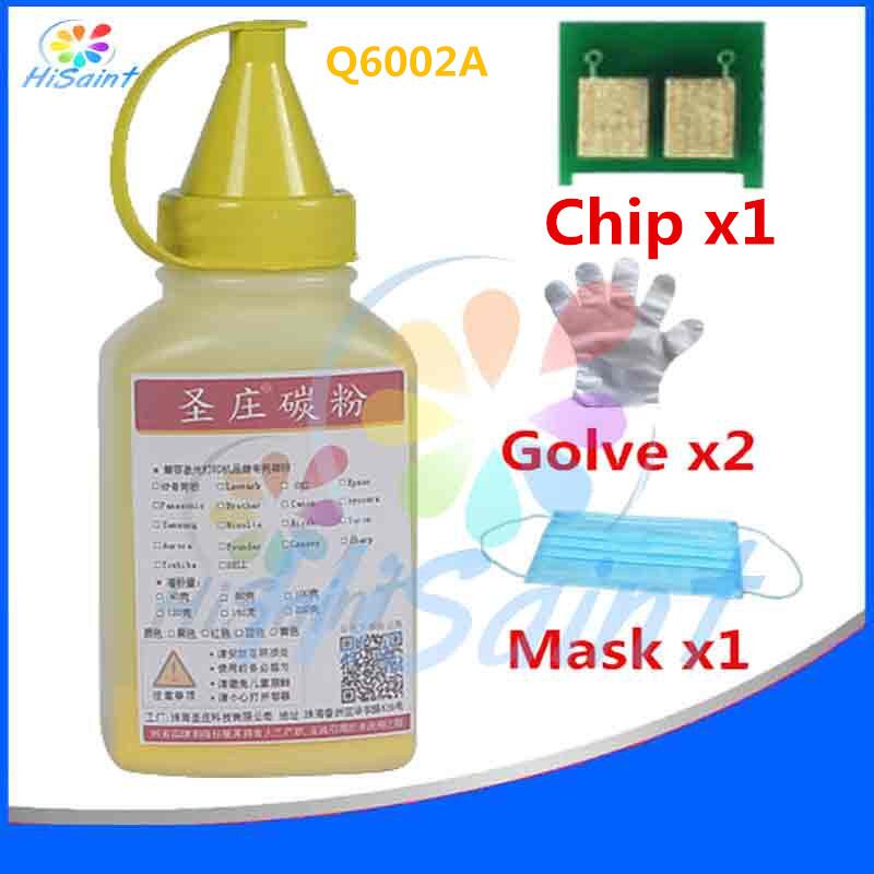 Hisaint用のhp 6002 q6002aトナー粉末とチップのlaserjet 1600/2600n/2605/cm1015 mfp/cm1017 mfpレーザープリンタパニック買い