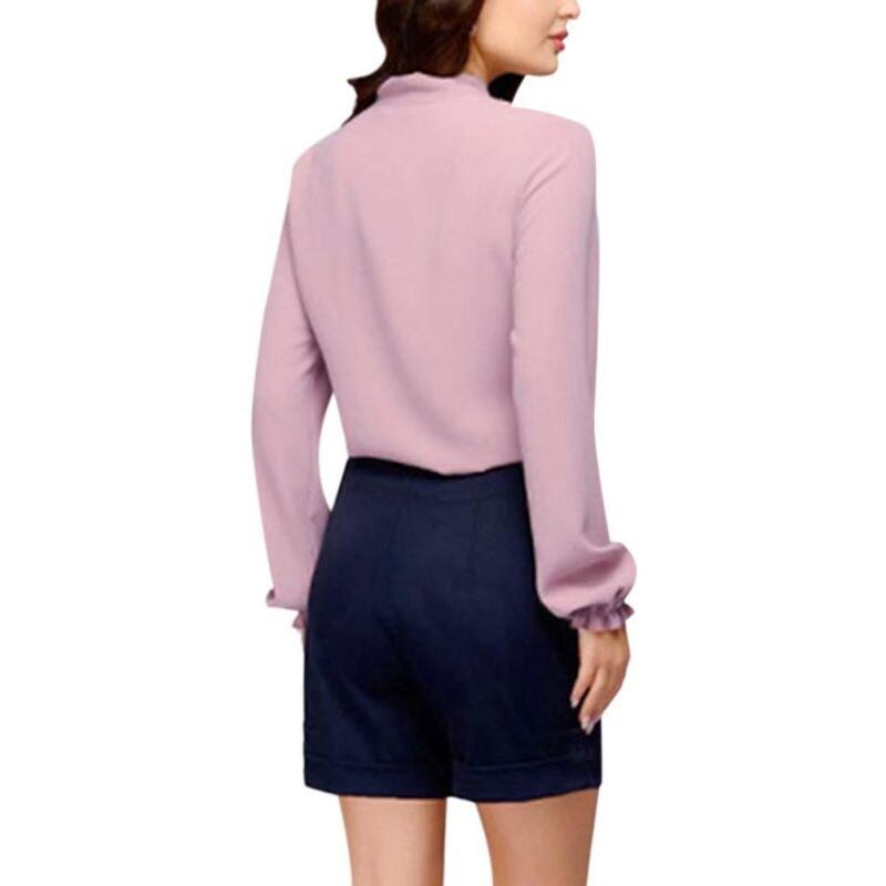 2018 長袖秋シャツ女性のエレガントなオフィスレディレースアップ弓スタンド女性トップスとブラウス