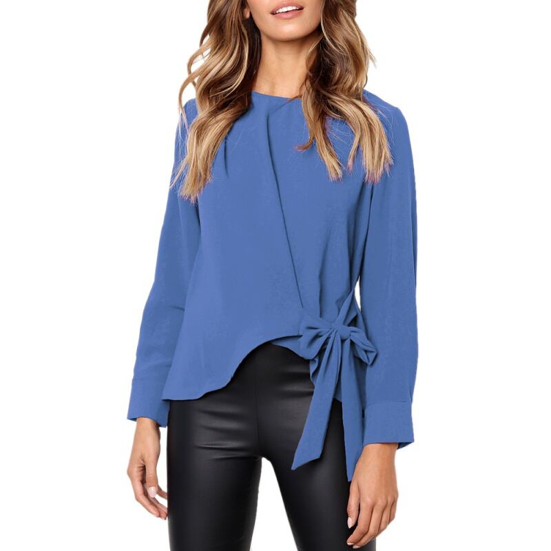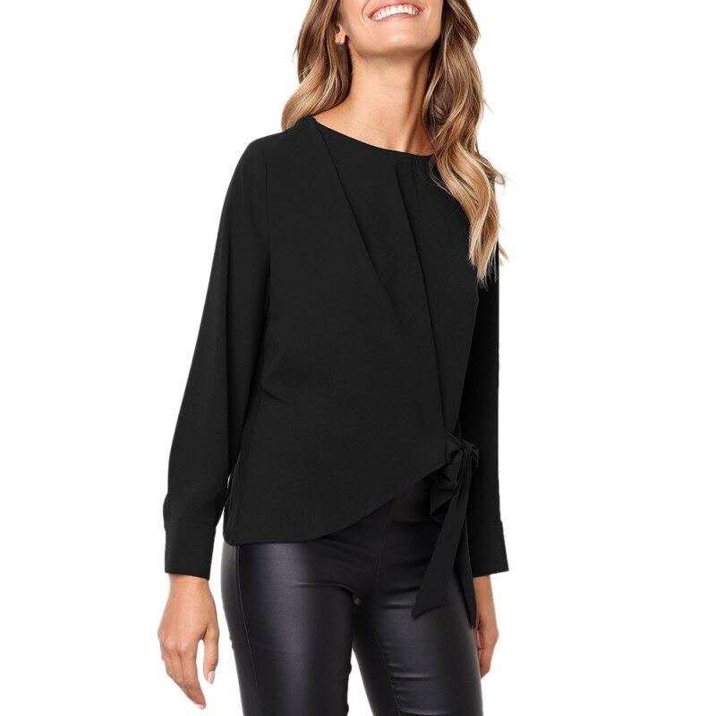 カジュアル秋の女性のシャツは長袖弓固体ブラウス女性のエレガントな不規則な Blusas トップス 2018 新