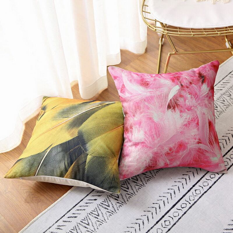 新しいoct。ホームテキスタイルファッションフェザーパターンコットンリネン片面両面正方形枕ケースギフト#41467