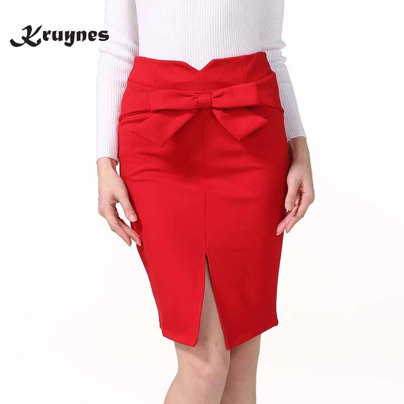 女性ペンシルスカートプラスサイズ秋夏新しいファッション膝長さハイウエストカジュアルボディコンスカートエレガントなオープンスリット弓スカート