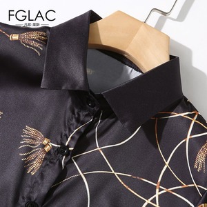 Fglac女性ブラウスシャツファッションカジュアル長袖プリントシフォンシャツエレガントなスリムターンダウン襟オフィスレディシャツ
