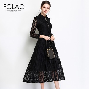 Fglac女性ドレスファッションカジュアル長袖レースドレスaラインヴィンテージパーティードレスハイウエストサマードレスvestidos