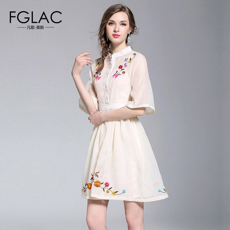 Fglac女性ドレスファッションエレガントなスリム半袖サマードレスaライン刺繍パーティードレスvestidos