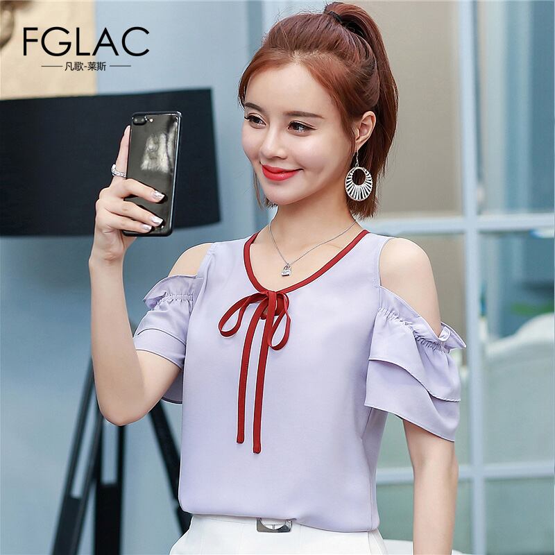 FGLAC 女性ブラウスシャツファッション半袖オフショルダーシフォンブラウスエレガントスリムソリッドカラーの夏は、女性 blusas