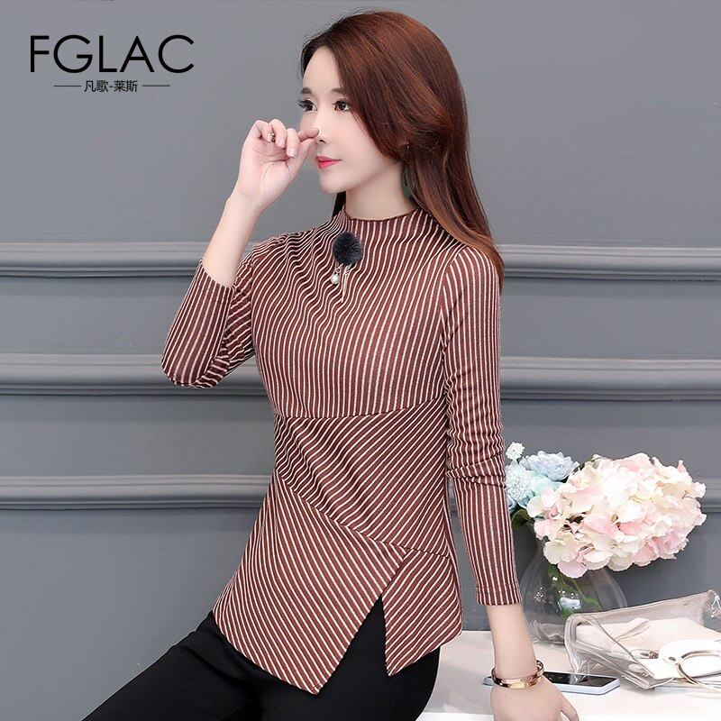 女性ブラウスシャツファッション長袖ストライプシャツエレガントなスリムプラスサイズ 4XL 女性はカジュアル秋シャツ