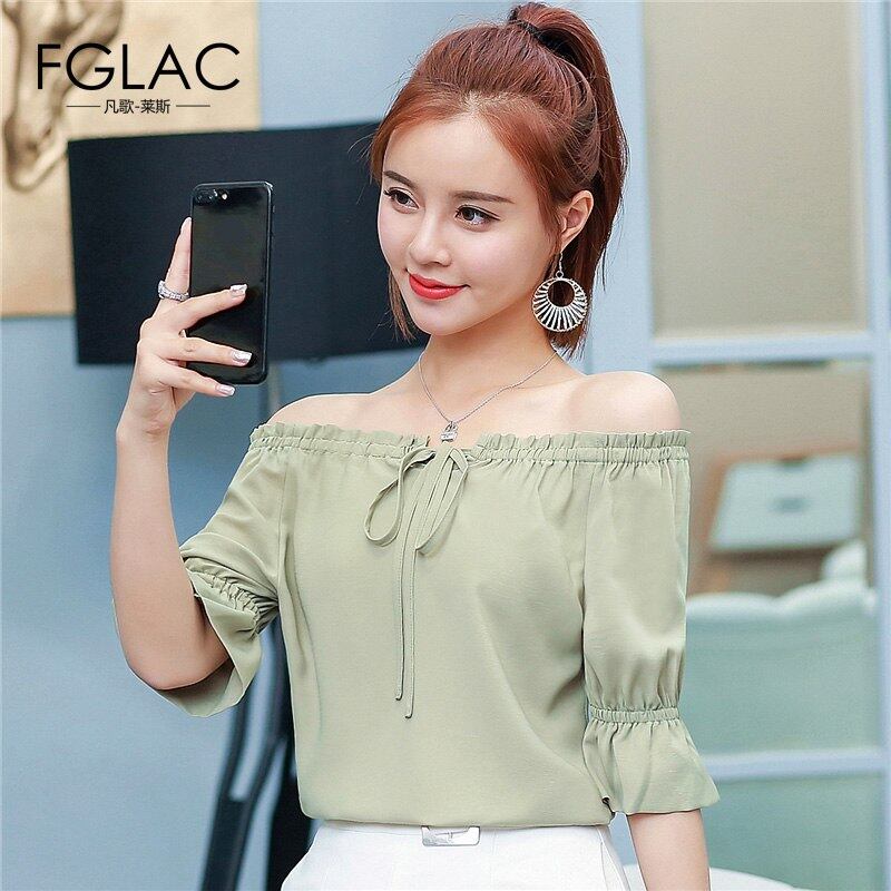 FGLAC 秋ブラウスエレガントなスリムセクシーなスラッシュネック女性のシャツホット無地シフォンブラウスオフショルダー blusas