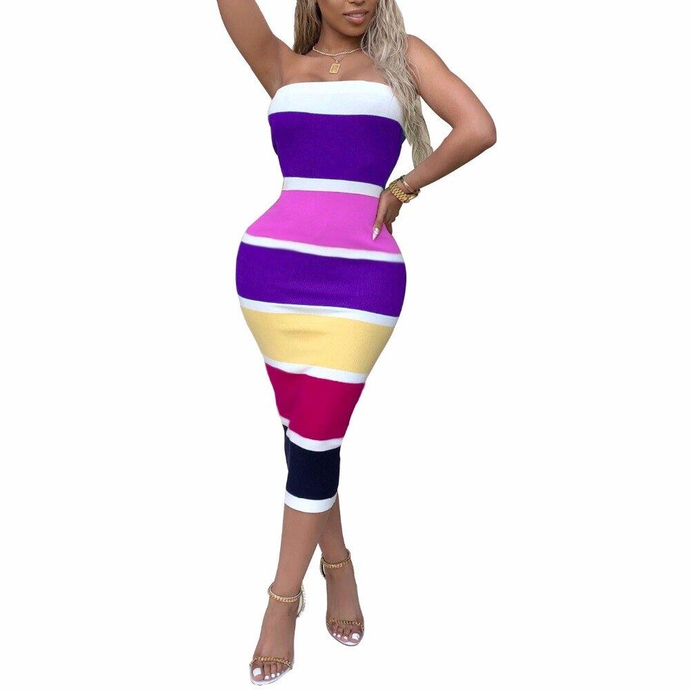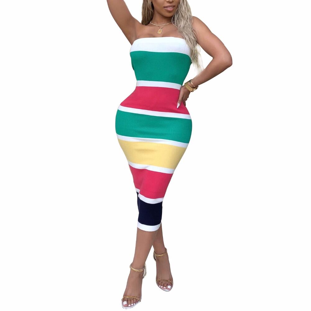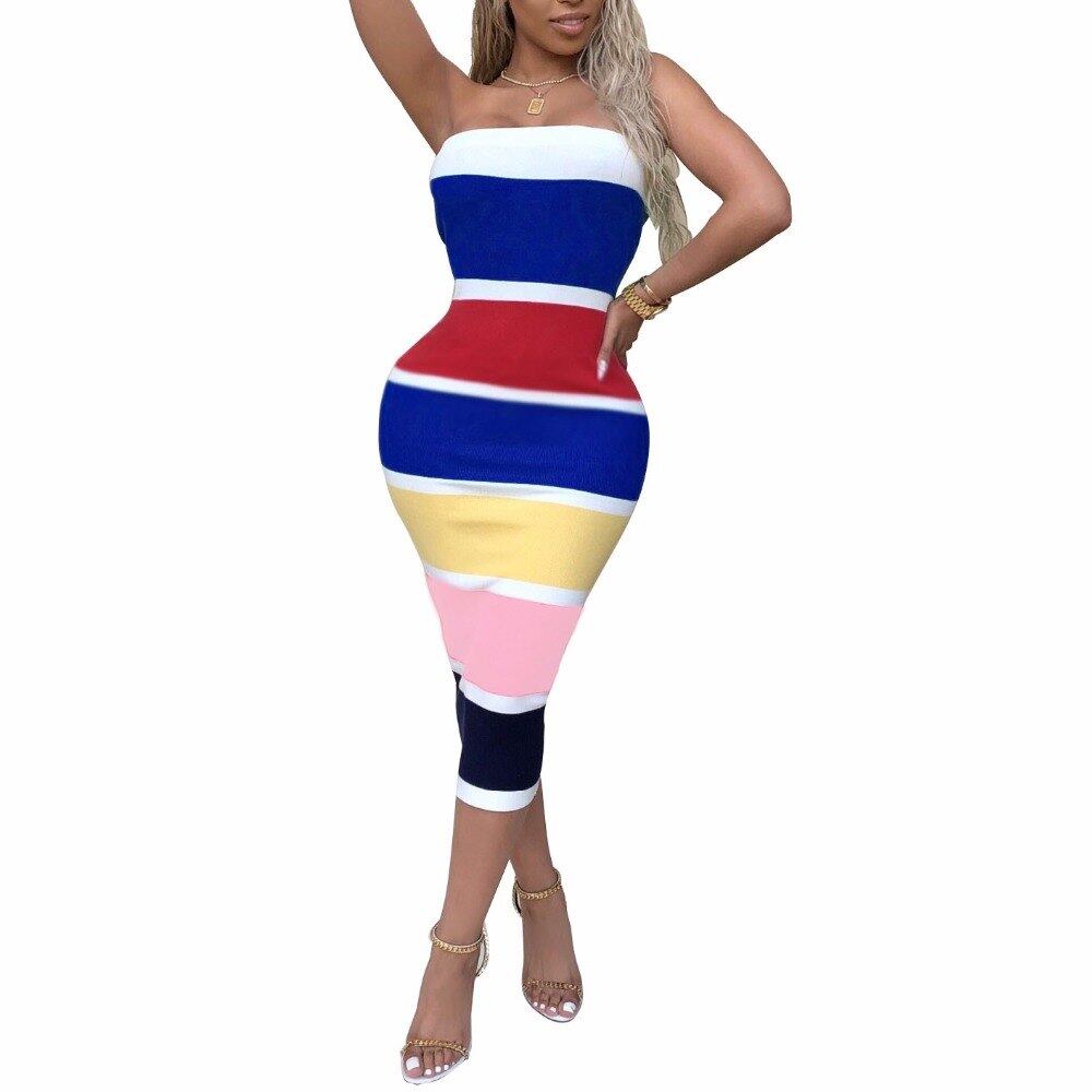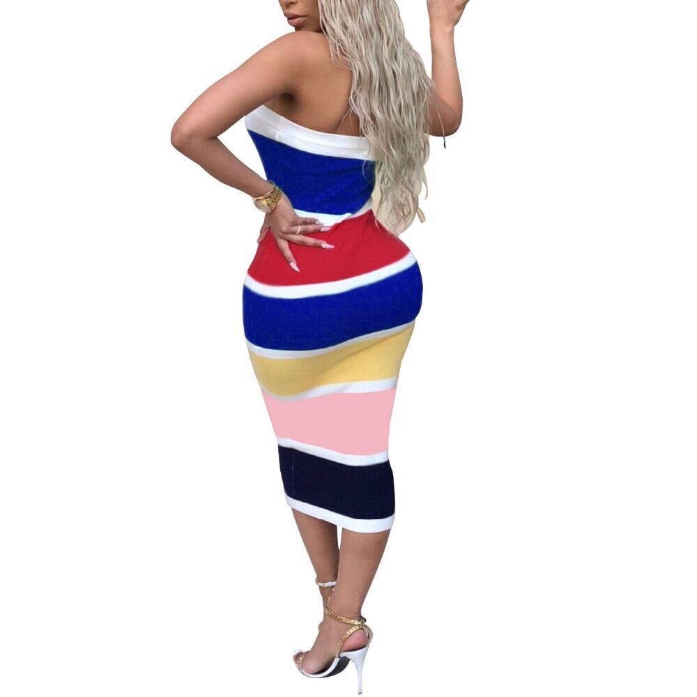 セクシーなラップドレス2018新しいストライプストラップレスオフショルダーバックレスミッドカーフボディコンペンシルドレスドレスクラブ摩耗パーティーサマードレス