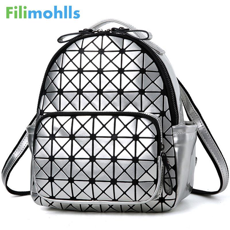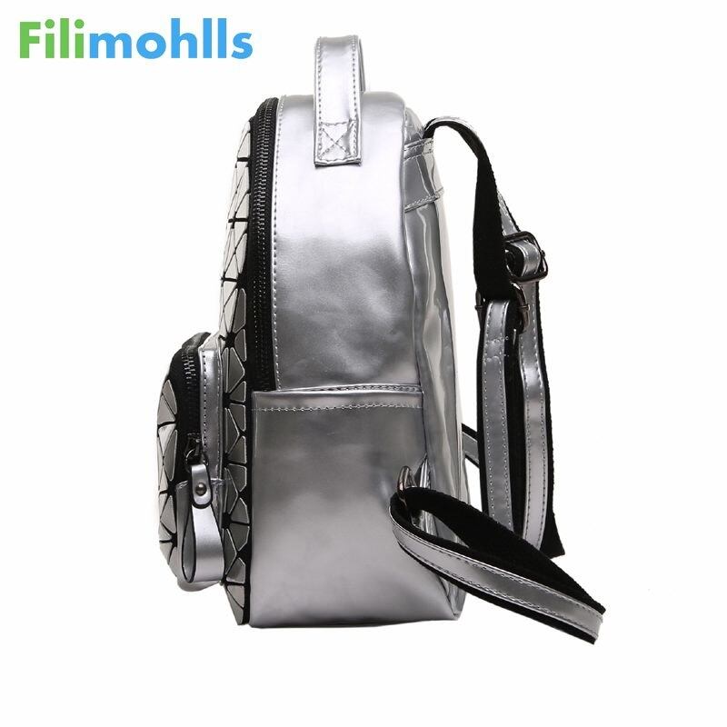 女性リュック幾何チェック柄スパンコール女性・スクールバックパック用十代の女の子puレザーbagpackホログラフィック女性バッグS1485
