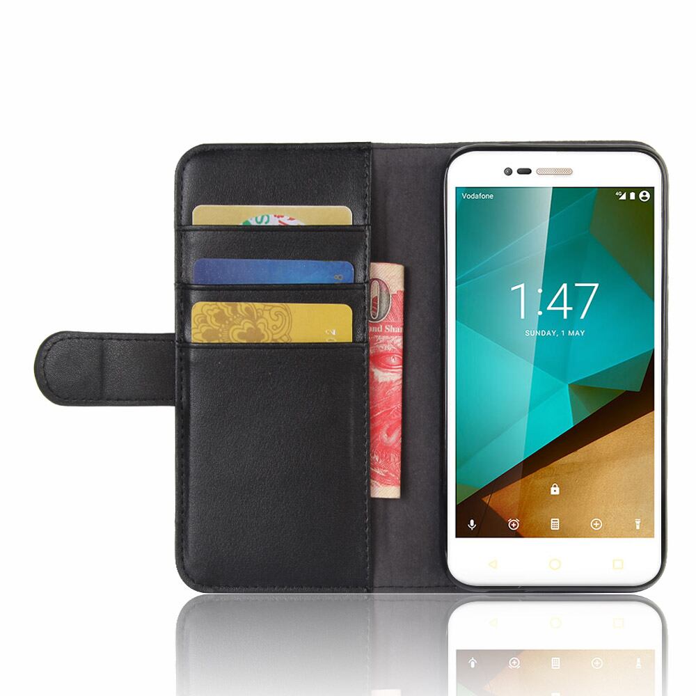 フリップウォレットスタイルウシ皮膚革ケースカバーのためのボーダフォンスマートプライム7 vf600スタイル7磁気付きホルダースタンド機能