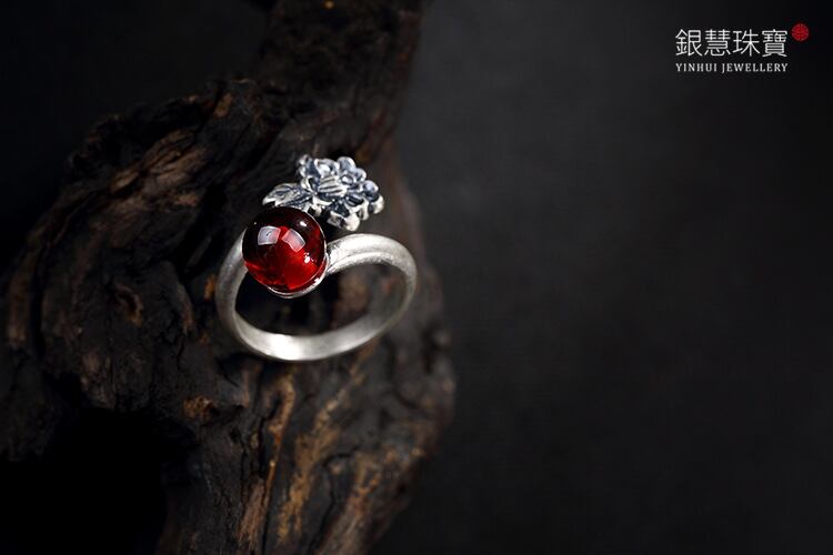 KJJEAXCMY ブティックジュエリー S990 、シルバー、蓮、トパーズ、ザクロ、赤グローブ、女性の人格、スターリングシルバー、オープンリング。