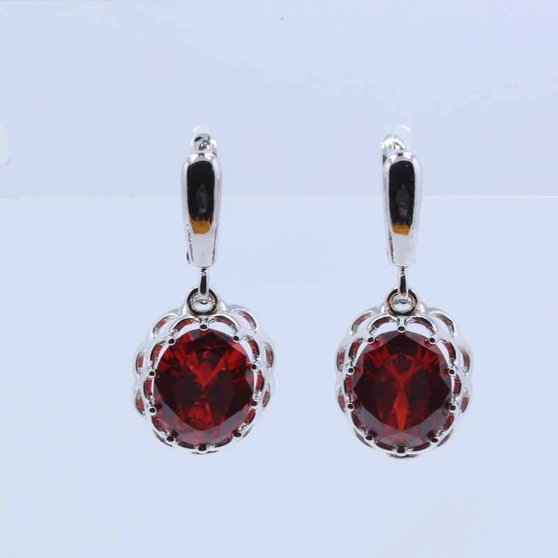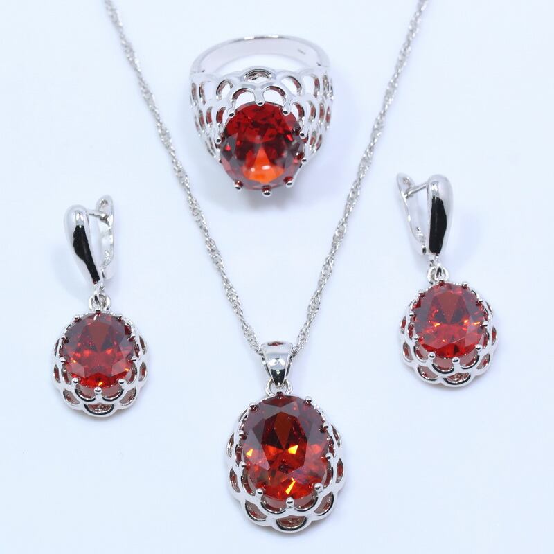 をニース925シルバーウェディングブライダル四ピースジュエリーセット赤rhodoliteホワイトクリスタルリングサイズ6/7/8/9/10ための女性09