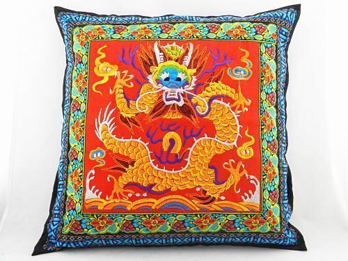 中国エスニックドラゴンハンドステッチ刺繍テキスタイルクッション