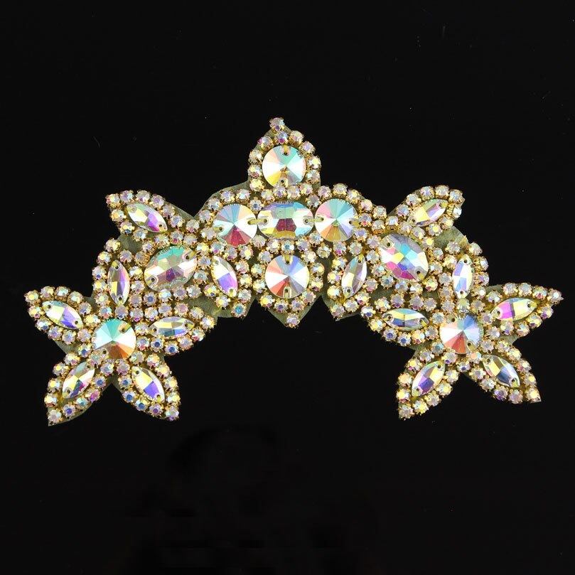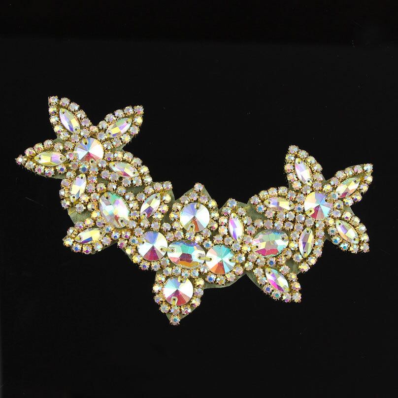 1ピースファッションゴールデン見事なabラインストーンアップリケトリム手作りトリム衣服衣装装飾R2811