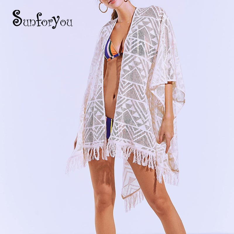 レースビーチカバーアップ女性水着2018房ビキニカバーアップパレオデプラージュプラスサイズ水着サロンチュニック用ビーチカフタン