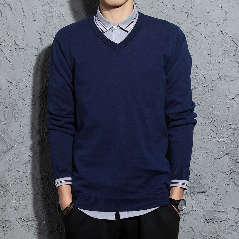 2018 新ファッションブランドセーター男プルオーバー V ネックスリムフィットジャンパーニットウール秋韓国スタイルカジュアル男性服