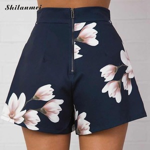 2018女性ショーツ夏ハイウエストジッパーフローラルプリントカジュアルショーツファッションヨーロッパエレガントコットンヴィンテージショーツfeminino