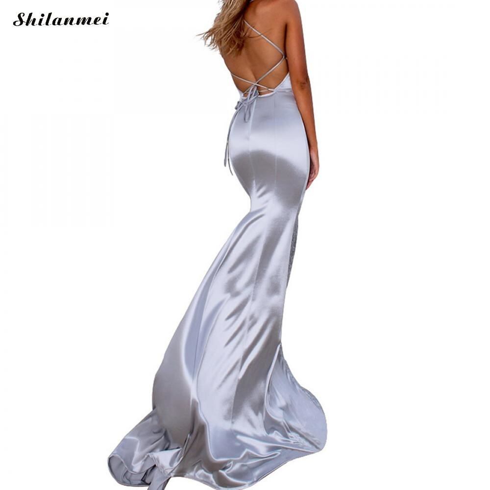 スリヴァーヴィンテージ背中の開いたスパンコールパーティードレスvestido女性セクシーなボディコン人魚カクテル夏ドレスエレガントな床の長さのドレス