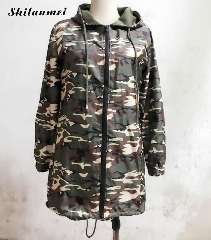 新しいファッション2017秋迷彩ジャケット軍事コートポケットジッパー女性フーディジャケットスリム因果女性生き抜くジャケットコート