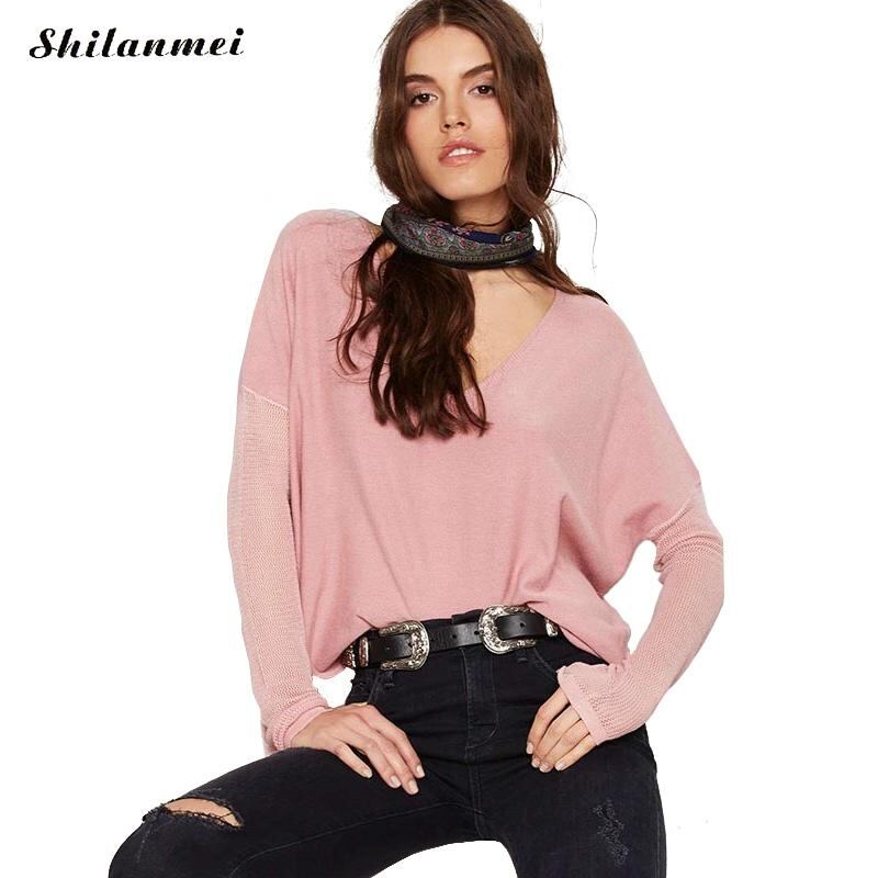 2017女性中空アウトセクシーなvネックニットセータープルオーバー緩いトリコットカジュアル綿生き抜くジャンパーセーターmujer blusas