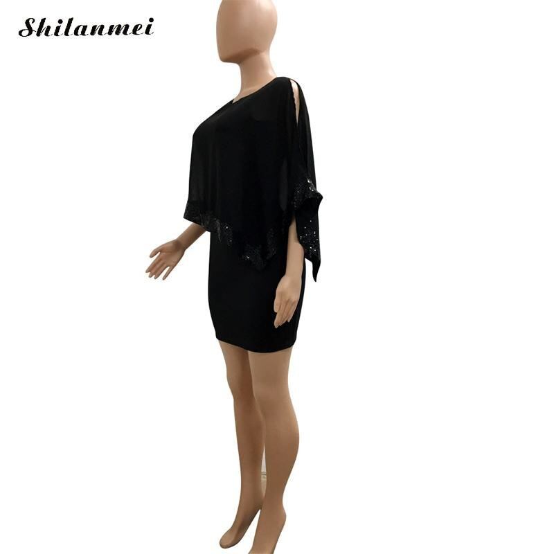 夏の女性のファッションスパンコールブラックミニドレスエレガントな女性のパッチワークセクシーなスリムパッケージヒップボディコンパーティードレスvestidos