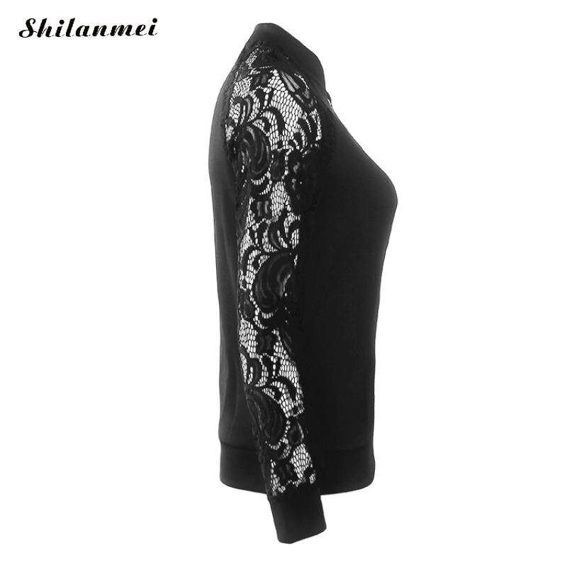 2018 新ファッションレディース因果レースジャケット秋長袖中空アウトジッパージャケットコートレディースソリッドカラースリミング生き抜く