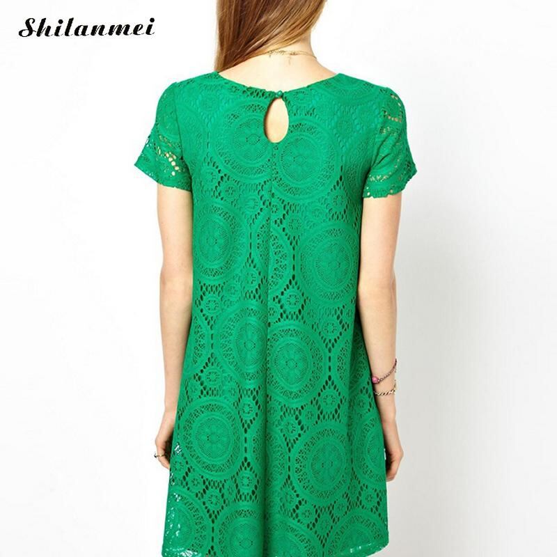 夏のドレスセクシーな女性カジュアル半袖ビーチショートドレスプラスサイズ中空アウトレースドレスレディースソリッドミニローブファム