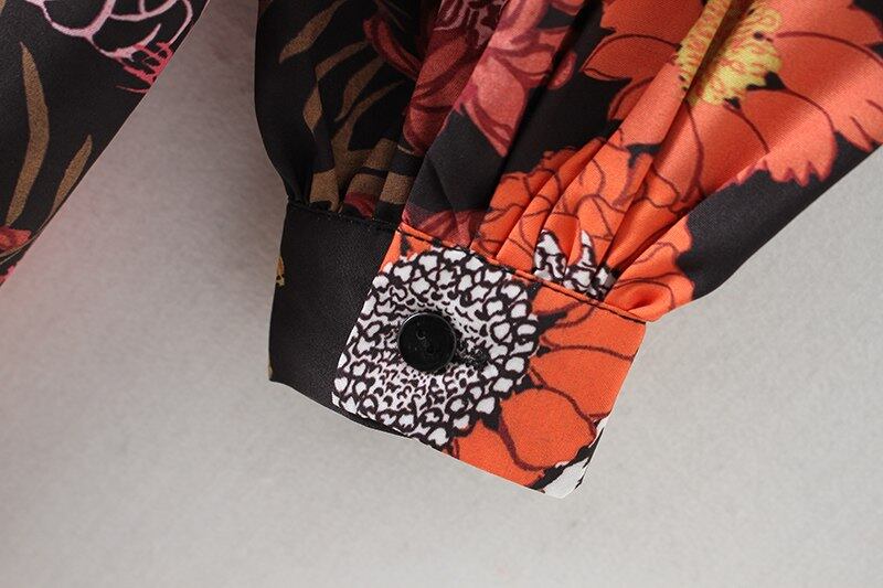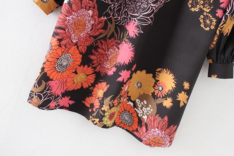2018春新しい到着の女性ヴィンテージ花柄ドレス、女性エレガントカジュアルvネックドレスで長い袖
