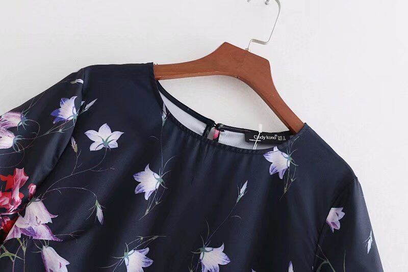2018夏新ヴィンテージ花プリント半袖ドレス、女性エレガントスリムブランドカジュアル短いドレス