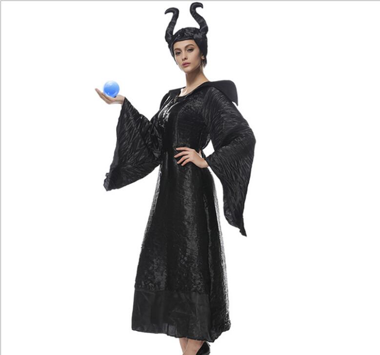悪事衣装大人女性ハロウィン魔女コスプレおとぎ話睡眠美容呪い魔術黒ドレスホーン映画
