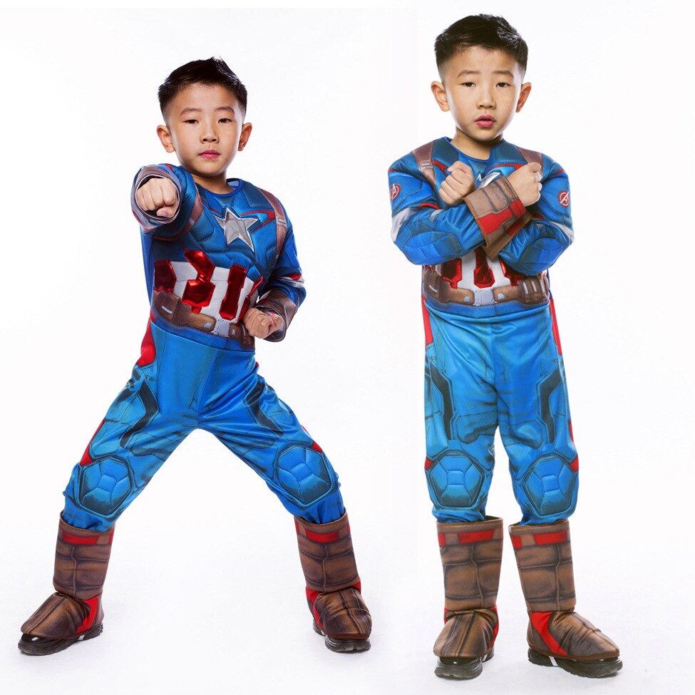 キャプテンアメリカスパイダーマンデラックス筋肉クリスマススーパーマン衣装のため子供男の子子供スーパーヒーロー映画男の鋼コスプレ