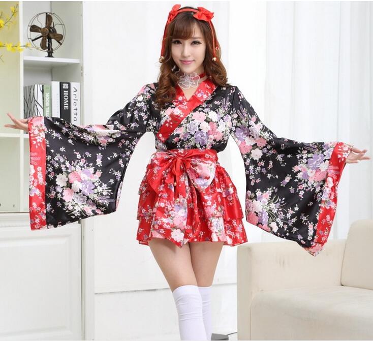 赤桜着物ドレスハロウィンヘビーさくらコスプレアニメ衣装、伝統的な日本の着物ロリータメイドドレス